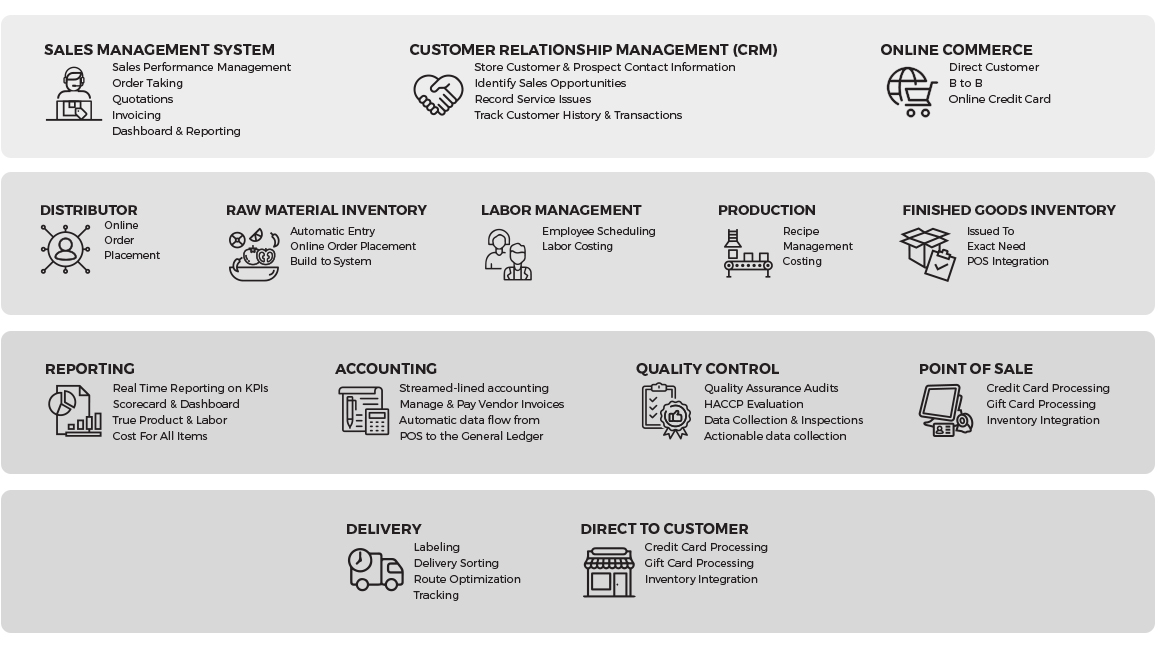 With a secure and centralized data repository, everyone in the organization can be confident that data is correct, up-to-date, and complete. Data integrity is confirmed for every task performed throughout the organization, from a quarterly financial statement to a single outstanding receivables report, without relying on error-prone spread sheets. Today, ERP systems are critical for managing thousands of businesses of all sizes in food-related industries. AVEEROS does all of the above and more!