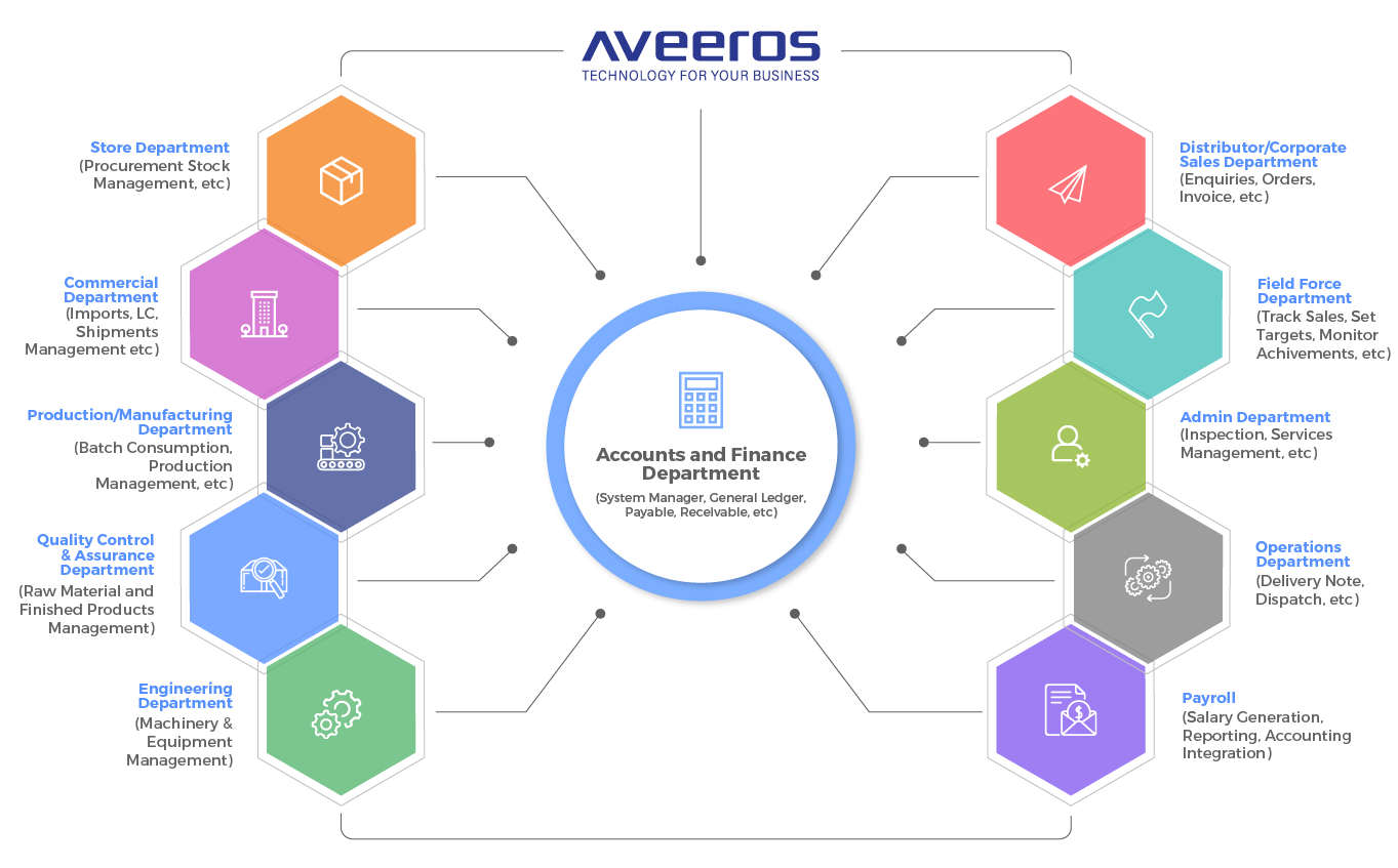 For your Sales, Distribution, Accounting, Procurement, Production, Supply Chain, Quality, Regulatory Compliance, Payroll, Field Force Effectiveness and Management Reporting needs, the Aveeros Pharma ERP platform has you covered: